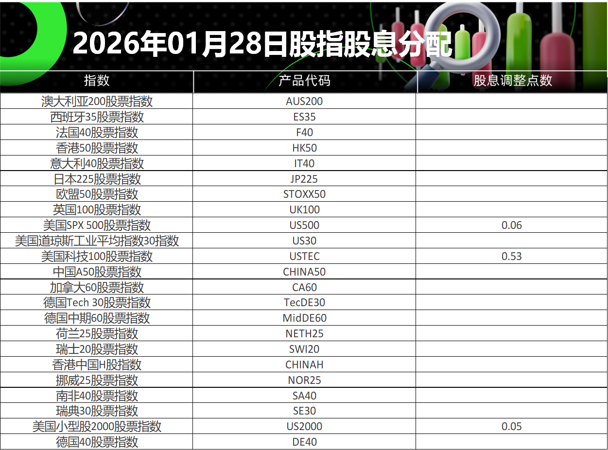 请查阅我们更新的2026年01月28日股指股息分配表。