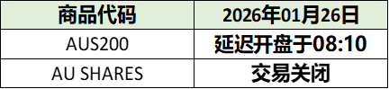 23 Jan 2026 2026年01月节日交易时间更新(澳大利亚国庆节) Rachel Yu No Comments 尊敬的交易者, 请查看我们更新的2026年01月26日(星期一)的澳大利亚国庆日交易时间表。 以下提到的所有时间均为平台时间(GMT+2)。 IC Markets Global 中文团队 中文官网: http://ic-asia-cn.com Email: support.cn@icmarkets-cs.com 微博:@IC小帮手